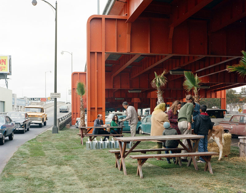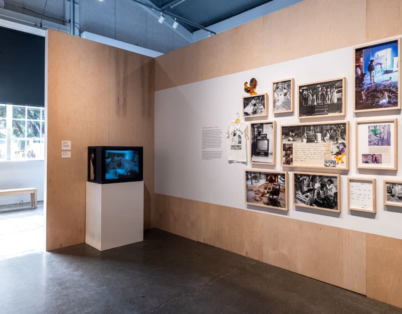 Decades ahead of her time, Sherk’s pioneering 1970s San Francisco projects—including Portable Parks I-III (1970, with Howard Levine) and Crossroads Community (The Farm)—laid the foundation for a global movement to reclaim urban spaces. The exhibition presented newly transferred film and video, photographs, collages, works on paper, artist books, and ephemera from performances and site-specific interventions. Early performances included Snow Job (1970), Public Lunch (1971) at the San Francisco Zoo, and Living in the Forest (1973) at de Saisset Museum. The Farm (1974-1987), a multi-arts center and environmental education farm beneath a freeway interchange, inspired San Francisco’s transformation of the site into Potrero del Sol park. Her bicoastal nonprofit A Living Library (established 1981) continues community-oriented environmental projects on Roosevelt Island, NYC, and in San Francisco’s Bernal Heights and OMI/Excelsior neighborhoods.