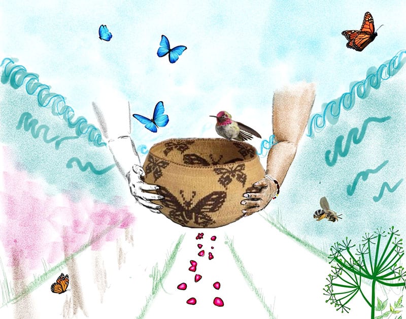 Jewelina Acosta is from a small non-federally recognized tribe named Yokaia (the deep valley) from which the name Ukiah, CA originated. She is the owner of Inkdigenous Tattoo, which brings forward and makes room for her traditional and cultural lifestyle in the tattoo industry. She uses her artwork to share traditional ecological knowledge with the community, making the world a better place one art piece at a time.