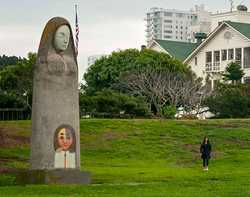 The exhibition features works from local artists Beniamino Bufano and Lawrence Ferlinghetti to international figures such as Giorgio De Chirico and Tina Modotti.